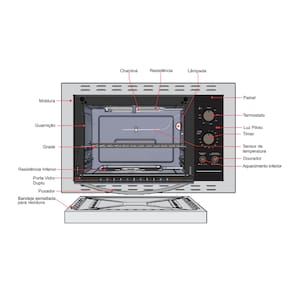 Lâmpada interna que facilita a visualização dos assados, com proteção de vidro;