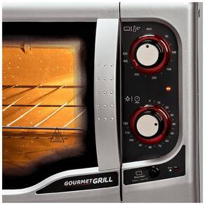O forno elétrico de bancada Gourmet Grill, possui porta com vidro duplo que mantém por mais tempo o calor interno, conservando a temperatura dos assados e reduzindo o consumo de energia elétrica. Conta com controle de temperatura automático de 50°C a 320°C e timer de até 120 minutos com aviso sonoro, além de pés antiderrapantes que oferecem mais estabilidade e segurança no uso do produto. O Gourmet Grill é perfeito para a sua cozinha.