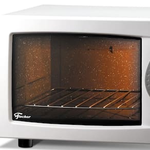 - Um dos Fornos mais vendidos da categoria, o Fischer Grill Possui um design arrojado e inovador, com frontal em termoplástico branco, abertura ergonômica e corpo interno autolimpante.