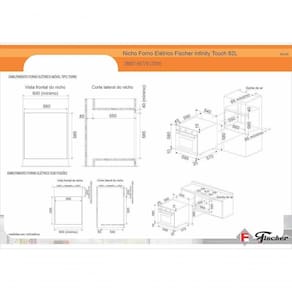 Forno Elétrico Fischer Infinity Touch de Embutir 82 Litros com controle eletrônico digital, timer de até 10 horas, temperatura de 50C a 250C, e corpo interno esmaltado easy clean.Timer