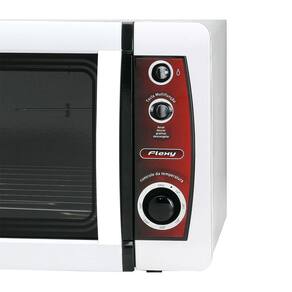 FORNO ELÉTRICO FLEXY EASY CLEAN 46 LITROS LAYRCom o forno Flexy Easy Clean você vai preparar deliciosas receitas com muito mais facilidade e rapidez. Esse forno elétrico, da Layr, com capacidade de até 46 litros, possui corpo externo com acabamento branco e interno com revestimento autolimpante, vem com termostato automático de precisão, que vai de 50 até 300 graus, assim você consegue preparar as mais variadas receitas. Também tem isolamento térmico, porta de vidro duplo de cristal temperado e com perfil de alumínio anodizado com pintura eletrostática e prateleira removível em 3 posições. -Gabinete externo em acabamento branco. -Gabinete interno com revestimento autolimpante. -Termostato automático de precisão de 50 a 300 graus. -02 Resistências blindadas (sup. 750w e inf. 1000w) -Tecla multifunção. -Isolamento térmico. -Porta com vidro duplo de cristal temperado. -Porta com perfil de alumínio anodizado com pintura eletrostática -Lâmpada interna. -Prateleira removível em 03 posições. -Instalação elétrica certificada pelo Inmetro. -O gabinete externo vem protegido com uma película plástica de proteção e deverá ser retirada no momento do primeiro uso. Características do produtoCor BrancoPotência 1750 WVolume 46 LitrosPerfil porta Alumínio anodizadoMaterial porta Vidro cristal temperadoPintura EletrostáticaLâmpada interna SimIsolamento interno SimResistência blindadas - Superior 750 WResistência blindadas - Inferior 1000 WPossui tecla multifunção SimConsumo máximo à 300C 0,9 kw/hCertificação Inmetro OCP 0040Dimensões internas 27,5 x 38,5 x 43,2 cm (A x L x P)Dimensões externas 36 x 57 x 49 cm (A x L x P)Marca LayrPeso aproximado do produto 11,1 KgInformações Adicionais Prateleira removível em 3 posiçõesConteúdo da embalagem: 01 FORNO ELÉTRICO*Garantia: 03 meses contra defeitos de fabricação.*Imagens Meramente Ilustrativas.*Objetos de decoração das fotos não estão inclusos.*As cores podem variar conforme monitor/smartphone utilizado para a visualização do anúncio. Ean: 7896560901177