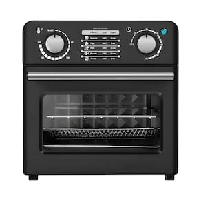 Cozinhe de forma mais rápida, saudável e deliciosa!Oeletrodoméstico multifuncional que une a versatilidade de um forno compacto com a tecnologia saudável da fritadeira a ar.- Painel intuitivo e visor transparente.-Graças ao seu sistema de circulação de ar quente em alta velocidade, este forno frita seus alimentos favoritos utilizando pouco ou nenhum óleo.-Seu tamanho é ideal para bancadas, e a porta de vidro temperado permite acompanhar o cozimento com segurança.Especificações Técnicas:- Material: Alumínio/Componentes elétricos/Vidro- Dimensões Aprox.: 23cm (ALTURA) x 22cm (LARGURA) x 21,5cm (PROFUNDIDADE)- Potência: 1000W- Capacidade: 10L- Cor: Preto- Temperatura: até 230°C- Timer: até 60min- Frequência: 60Hz- 3 bandejas: Grelha, cesto e assadeiraItens Inclusos:- 01x Forno elétrico- 03x Bandejas Marca: Não Informado
