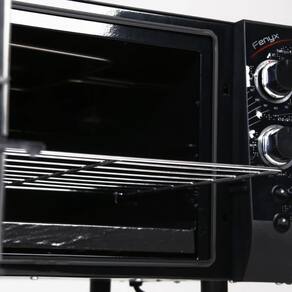 O Fenyx Black entrega praticidade e estilo: acabamento preto, revestimento interno easy-clean, termóstato 50–300 °C, timer 0–120 min e duas resistências blindadas (750 W sup. / 1000 W inf.) para aquecimento uniforme. Porta com vidro duplo, lâmpada interna, tecla multifunção, painel em Braille e INMETRO completam o pacote.