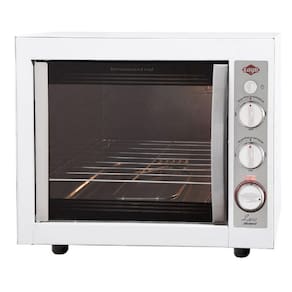 Características: Gabinete externo acabamento em aço inoxidável. Gabinete interno com revestimento easy Clean. Frontal em aço inoxidável. Termostato de precisão 50o 300oc . 04 resistências blindadas 2 sup.1200w e 2 inf 1200w . Puxador em aço inox. 02 chaves de controle da temperatura mínimo, médio e máximo . Visor iluminado de temperatura. Porta removível de vidro cristal temperado. Isolamento térmico reforçado com lã de vidro. Lâmpada interna com vidro protetor. Bandeja para resíduos. 01 prateleira removível em 03 posições. Instalação elétrica certificada pelo inmetro.