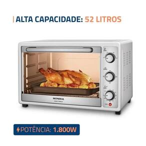 NãoO Forno Elétrico Grand Family II FR-52-W da Mondial é a escolha perfeita para quem busca praticidade, versatilidade e alto desempenho na cozinha. Com capacidade de 52 litros, ele oferece espaço suficiente para preparar receitas grandes, ideais para toda a família, desde assados e tortas até bolos e frangos inteiros. Seu design moderno em branco com detalhes em inox, com puxador e botões em aço inox, garante durabilidade, resistência e um visual elegante que combina com qualquer cozinha.