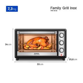 SimO Forno Elétrico Mondial Family Grill FRN-48-BI oferece amplo espaço interno e alta performance para o preparo de receitas do dia a dia ou refeições completas para toda a família. Com capacidade de 48 litros, permite assar pratos grandes ou preparar diferentes alimentos simultaneamente com praticidade.