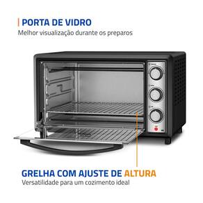 Indicado para uso residencial, ideal para famílias que buscam um forno elétrico espaçoso, versátil e eficiente para preparar carnes, massas, bolos, gratinados e diversos tipos de receitas.