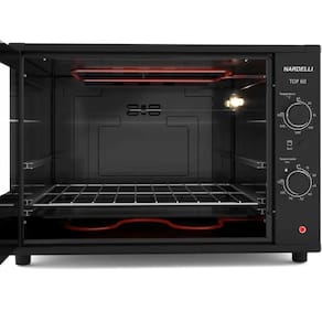 Forno elétrico de bancada com 60 litros de capacidade, potência de 1750W, termostato de até 300°C, função Grill/Dourador, timer de até 120 minutos, acabamento interno Easy Clean, porta de vidro temperado, isolamento térmico e pés antiderrapantes.Timer