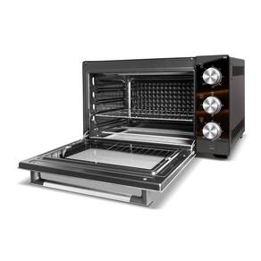 O Forno Elétrico Philco Full Glass 50l PFE50PE possui design elegante, laterais em preto e frente com acabamento espelhado, tornando sua cozinha funcional e moderna! Com Função dourar, que deixa os alimentos mais dourados e crocantes ele tem capacidade para 50 litros, aquece, assa, tosta, doura, gratina e grelha. Oferece duas resistências, superior e inferior, com controle individual de temperatura para distribuir melhor o calor. Além do timer de 120 minutos com desligamento automático, praticidade para programar o preparo de diversas receitas. E para sua maior comodidade, conta com grelha deslizante com regulagem de altura, facilitando o manuseio e o acesso ao alimento!