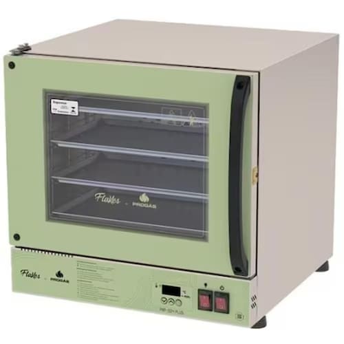 Com acabamento sofisticado na cor verde Flakes, o Forno Elétrico PRP-004 PLUS da Progás é a união perfeita entre estética diferenciada e performance . Ideal para ambientes que exigem eficiência e personalidade, ele conta com turbina interna que proporciona assados mais rápidos e uniformes. Seja em confeitarias, lanchonetes ou cozinhas domésticas com alto padrão, este forno se destaca pelo desempenho e pelo visual inovador.