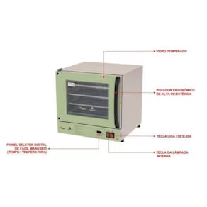 Modelo: PRP-004 PLUS | Tipo de forno: Padaria | Marca: Progas | Tipo de montagem: de bancada | Produto: Forno Elétrico | Capacidade: útil: 36litros | Profundidade: 66 | Tipo de Forno: Forno Elétrico | Cor: Verde | Alimentação: Elétrico