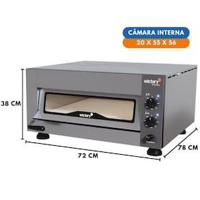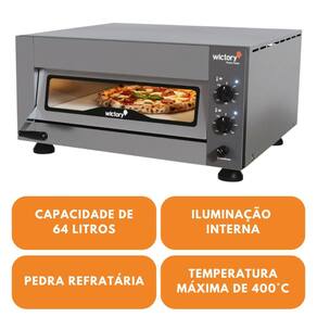 Informações Técnicas Marca: Wictory Modelo: WP-50 Capacidade: 64 L Fonte de energia: Elétrico Tensão: 220V - Monofásico Corrente: 35A Potência instalada: 7 kW Consumo médio: 7 kW/h Faixa de Temperatura: 0°C a 400°C Frequência: 50/60 Hz Classe: I Cordão de alimentação: Tipo Y Peso do forno: 38 kg