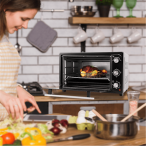 Controle de Temperatura Ajustável: Varie a temperatura de acordo com a necessidade da receita, com ajustes entre 90°C a 250°C, garantindo o ponto ideal para assados e gratinados.