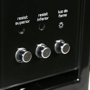 Termostato automático de 50º a 300ºC; 02 Resistências blindadas sup.750w. E inf. 1.000w ; com controles independentes; Porta de vidro duplo cristal; Isolamento térmico duplo; Timer de 0 a 120 minutos; Lâmpada interna com vidro protetor; Visor de temperatura iluminado; Prateleira removível em 03 posições; Aparador esmaltado para resíduos.Timer