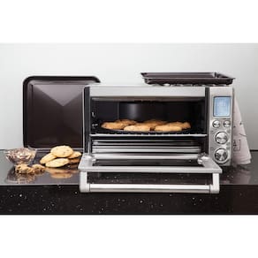 SimFaça diferentes tipos de preparos com muita facilidade com o Forno Elétrico Smart em Aço Inox 9 Funções 22 L 127 V da linha de Eletroportáteis Tramontina by Breville. Para tornar as suas receitas ainda melhores, ele conta com opção grelhar, que gera temperatura alta na parte superior, deixando os alimentos mais crocantes. A opção tostar conta com temperatura muito alta nas partes superior e inferior, possibilitando que os alimentos fiquem dourados e crocantes. Traz também a opção massas, que gera um aquecimento por convecção homogêneo, assando por compelto. Para tornar o manuseio mais ágil, a grade magnética com ejeção automática possibilita remover facilmente os itens quentes. Além disso, conta com porta de porta de parede dupla de vidro temperado. LCD com retroiluminação fácil de ler, trazendo informações de tempo e temperatura. Conta com 5 resistências de quartzo com tecnologia de resistência IQ. Seletor de funções: 9 funções pré-definidas de cozimento. Seletor de tempo com desligamento automático e alerta sonoro. Bandeja de migalhas destacável com alça que não esquenta. Acompanha: assadeira antiaderente para pizza 33 cm e assadeira retangular esmaltada. Com o Forno Elétrico da Tramontina ficará muito mais fácil realizar diversos preparos e receitas que você adora.
