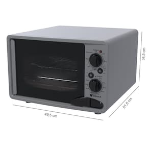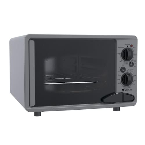 Tipo: Forno de bancada Marca: Venax Luz no forno: Sim (lâmpada não acompanha o produto) Prateleira do forno: 1 regulável Revestimento forno: Limpa fácil Controle de temperatura: Sim Temperatura: 50C até 300C Função grill: Sim Timer grill: até 120 min Espeto giratório: Não Bandeja coletora de resíduos: Sim Porta do forno: Vidro Panorâmico Preto Vidro duplo na porta: Não Porta com travamento mecânico: Sim Porta removível: Não Puxador da porta: Não Medidas do produto: Altura 34,5cm - Largura 49,5cm - Profundidade 51,5cm