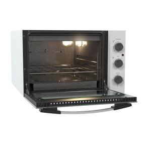 Tipo: Forno de bancada Marca: Venax Luz no forno: Sim (lâmpada não acompanha o produto) Prateleira do forno: 1 regulável Revestimento forno: Limpa fácil Controle de temperatura: Sim Temperatura: 50C até 300C Função grill: Sim Timer grill: até 120 min Espeto giratório: Não Bandeja coletora de resíduos: Sim Porta do forno: Vidro panorâmico Vidro duplo na porta: Sim Porta com travamento mecânico: Sim Porta removível: Sim Puxador da porta: Alumínio Medidas do produto: Altura 34cm - Largura 50cm - Profundidade 55cm