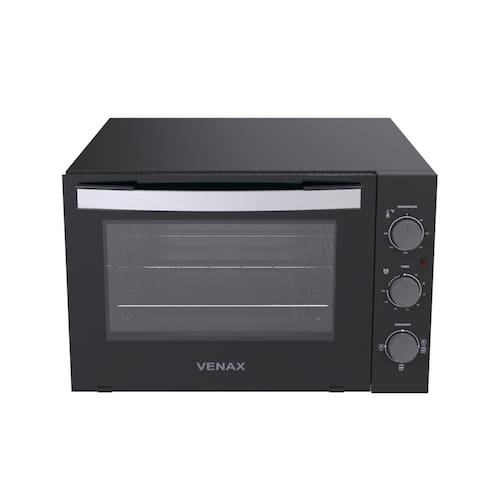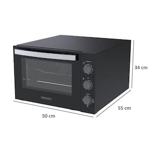Tipo: Forno de bancada Marca: Venax Luz no forno: Sim (lâmpada não acompanha o produto) Prateleira do forno: 1 regulável Revestimento forno: Limpa fácil Controle de temperatura: Sim Temperatura: 50C até 300C Função grill: Sim Timer grill: até 120 min Espeto giratório: Não Bandeja coletora de resíduos: Sim Porta do forno: Vidro panorâmico Vidro duplo na porta: Sim Porta com travamento mecânico: Sim Porta removível: Sim Puxador da porta: Alumínio Medidas do produto: Altura 34cm - Largura 50cm - Profundidade 55cm