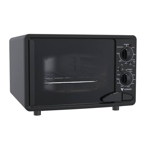 Tipo: Forno de bancada Marca: Venax Luz no forno: Sim Prateleira do forno: 1 regulável Revestimento forno: Limpa fácil Controle de temperatura: Sim Temperatura: 50C até 300C Função grill: Sim Timer grill: até 120 min Espeto giratório: Não Bandeja coletora de resíduos: Sim Porta do forno: Vidro Panorâmico Preto Vidro duplo na porta: Não Porta com travamento mecânico: Sim Porta removível: Não Puxador da porta: Não Medidas do produto: Altura 34,5cm - Largura 49,5cm - Profundidade 51,5cm