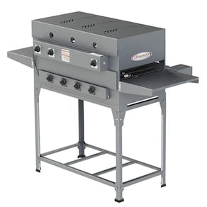 Conta com 3 infravermelhos superiores com acendimento individual para gratinar e 4 queimadores inferiores com acendimento individual para assar. Também possui abertura interna de 48 cm e funcionamento da esteira elétrico. Além disso, possui termômetro que atinge uma temperatura aproximada de 320 a 350C.