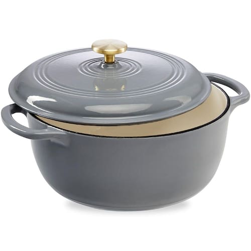 Especificações: Dimensões gerais: 35,5 cm (C) x 28,6 cm (L) x 19 cm (A) Capacidade do forno: 6 Qt Peso do produto: 6,4 kg. Material: ferro fundido Sem necessidade de montagem. Apenas para uso residencial SKU BCP: SKY7147 - Design resistente: o ferro fundido espesso é definido com um acabamento exterior brilhante e um interior esmaltado para combinar qualidade duradoura com fácil manutenção. - Pronto para forno e fogão: resistente e versátil, este forno holandês é adequado para qualquer sistema de cozimento! Use as alças laterais para levar sua refeição de fogões a gás e eletricidade para o forno e grelha; é perfeito para assar, fritar ou assar seus pratos favoritos - Tamanho familiar: Alimente grandes grupos em potlucks, festas e outras reuniões, pois este forno holandês de tamanho familiar comporta até 6 litros de caçarola, sopa, ensopado, assados e suas outras refeições exclusivas! - ALTA RETENÇÃO DE CALOR: Construído para alcançar e manter temperaturas de até 250 °C, um conjunto de saliências de condensação na tampa pesada ajuda a vedar umidade, calor e sabor - Eleve sua cozinha: um acabamento limpo e brilhante torna este forno holandês um ícone nostálgico e uma adição moderna a qualquer cozinha bem equipada; possui uma alça de metal escovado (prata ou ouro) para um toque extra de estilo! ; Dimensões gerais: 35,5 cm (C) x 28,6 cm (L) x 19 cm (A); Capacidade do forno: 6 Qt.