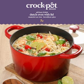 - Da família autêntico de fogões lentos: este forno holandês de ferro fundido esmaltado de 7 litros com tampa de vidro vem da linha autêntico de panelas lentas Crock-Pot que enfeitam cozinhas domésticas há mais de 40 anos. A coleção Artisan Studio adapta as melhores características dos fornos holandeses de ferro fundido esmaltado Artisan e os aprimora com tampas inovadoras de vidro de borossilicato. Envidraçada e revestida com um belo acabamento esmaltado, cada panela é um ótimo complemento para a cozinha e uma peça central deslumbrante para qualquer mesa.