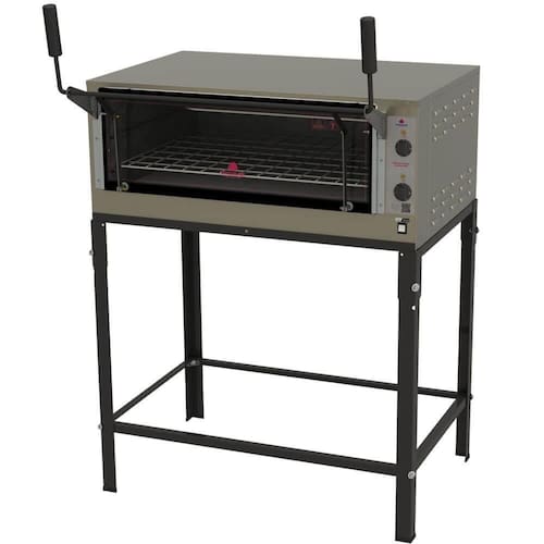 DESCRIÇÃO DO FORNO INDUSTRAL REFRATÁRIO 220V - Com cavalete desmontável, sapatas plásticas, gaveta móvel, placas refratárias, termômetro para controle de temperatura e porta tipo guilhotina; - Aço inox escovado; - Visores de vidro temperado; - Câmara interna com suportes para dois níveis de altura.