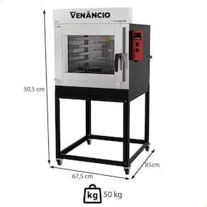 O Forno Industrial Turbo Twister Venâncio FVT5E tem uma temperatura máxima de 230C, ideal para assar diversos tipos de produtos de panificação e confeitaria.