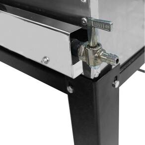 Características Técnicas: Laterais, frente e teto externas em aço inoxidável Sistema para abertura do vidro tipo guilhotina com acabamento em pintura a pó eletrostática com base fosfatizada Queimadores com sistema de gaveta, em aço tubular, com regulador de entrada de ar para uma chama perfeita Pedra refratária que armazena o calor obtendo maior Bandeja coletora de resíduos em chapa galvanizada super resistente Acompanha uma grelha reforçada por câmara Cavalete reforçado em aço carbono com acabamento em pintura a pó eletrostática com base fosfatizada Revestimento interno em aço galvanizado Câmara com três trilhos de apoio para regulagem de altura das grelhas Isolamento em lã de rocha Abertura total do vidro Termômetro na lateral do forno Equipamento para uso industrial e Forno a gás GLP baixa Medidas internas: Altura: 31,5cm | Largura: 44,5cm | Profundidade: 84cm Este produto requer assadeiras (são vendidas separadamente) **