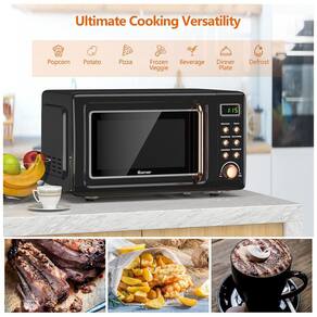 O micro-ondas retrô de bancada COSTWAY é um modelo compacto com capacidade aproximada de 20 litros, indicado para uso residencial em cozinhas, estúdios e pequenos apartamentos. Possui potência de 700W e cavidade interna equipada com prato giratório de vidro, que gira em 360° para distribuir o aquecimento de forma mais uniforme sobre os alimentos.?