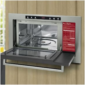 Forno micro-ondas de embutir com capacidade de 25 litros. Funções: dourador, descongelamento, cozimento combinado, auto menu, relógio, trava de segurança, 5 níveis de potência e display digital. Cavidade interna em aço inox. Moldura em aço inox escovado. Porta de vidro. Puxador com acabamento polido. Grade cromada. Produto Certificado pelo INMETRO.Função Grill
