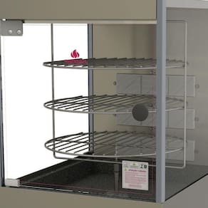 Esse Assador possui porta e vidros laterais em vidro temperado e controle progressivo de aquecimento. Além disso conta com 3 grelhas giratórias na tensão bivolt! Com esse Assador Compacto é possível assar 3 pizzas de 45 cm de diâmetro ou 12 frangos inteiros de até 2 kg cada.