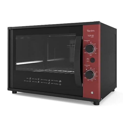 Quando o assunto é praticidade e inovação, nós temos a solução. Lançamento Forno Elétrico Terim TOP 60 Collor Vermelho Marsala. O modelo incorpora um design diferenciado, com painel em 6 opções de cores vibrantes: Vermelho Marsala, Laranja Damasco, Azul Anis, Amarelo Curry e nas opções madeirado Canela ou Jatobá! Além do design diferenciado a limpeza ficou muito mais rápida e fácil com o seu interior Easy Clean. Sem contar na economia por não necessitar do uso de produtos abrasivos. O controle ideal de temperatura pode ser ajustado em até 300 graus e o timer em até 120 min. Para melhor acompanhamento do preparo este produto também conta com opção de Grill e Luz interna. Facilitamos o manuseio em colocar ou retirar recipientes no interior do forno com a grade e a bandeja removíveis. Terim, tornando sua vida mais prática!