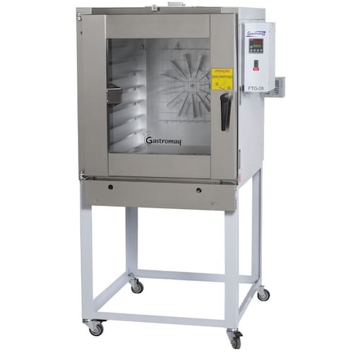 Forno Turbo a Gás 8 Esteiras com Pedestal FTG8 Gastromaq. Ideal para panificadoras, supermercados e similares. Indicado para assar pão francês 50g. Controlador digital com aviso sonoro que programa tempo, vapor e temperatura. Isolamento em lã de rocha de 50mm. Sistema de vedação da porta em silicone, vedando diretamente no vidro. Acabamento externo em pintura epóxi e acabamento frontal em inox escovado. Rodízios para deslocamento com trava. Regulagem do porta-esteira para 58x70 e 45x65. CAPACIDADE: 8 esteiras. CONSUMO MONOFÁSICO: 1kW/h. CONSUMO DE GÁS: 1,3 kg/h. MOTOR: 3/4Cv. POTÊNCIA: 1,1kw. PRODUÇÃO: 240 pães 50g. TEMPERATURA MÁXIMA: 250ºC. PESO: 139kg. DIMENSÕES(CxAxL): 95,5x172,5x129,5cm. Equipamento certificado pelo OCP 0070 conforme Portaria INMETRO - 267/2021. Forno Turbo a Gás 8 Esteiras com Pedestal FTG8 Gastromaq é na Atau.