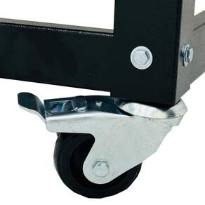 - Cavalete reforçado com sistema de encaixe de fácil montagem, equipado com 4 rodízios;