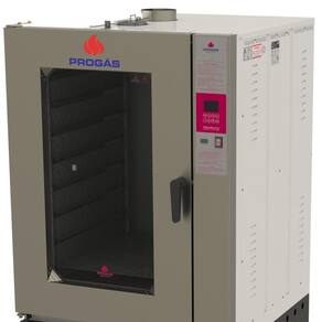 O Forno Turbo a Lenha Progás oferece uma solução completa para padarias e estabelecimentos que buscam eficiência e qualidade na produção de pães e produtos similares. Com suas 10 esteiras, é capaz de acomodar até 250 unidades de pães franceses de 50g, garantindo uma produção contínua e sem complicações. Equipado com iluminação interna, permite uma visualização clara do processo de cozimento, enquanto os visores de vidro temperado garantem segurança e durabilidade. Além disso, o controlador digital oferece praticidade ao permitir a programação de tempo, temperatura e vapor, resultando em resultados precisos e consistentes.O isolamento térmico com lã basáltica assegura uma distribuição uniforme de calor, enquanto a fornalha frontal e traseira contribui para uma cocção uniforme e eficiente. A presença da gaveta móvel para cinzas simplifica a limpeza após o uso. Uma característica inovadora deste forno é a turbina, que liga e desliga automaticamente ao abrir e fechar a porta, garantindo uma circulação de ar adequada e uma distribuição uniforme de calor, essenciais para um cozimento eficiente e uniforme.