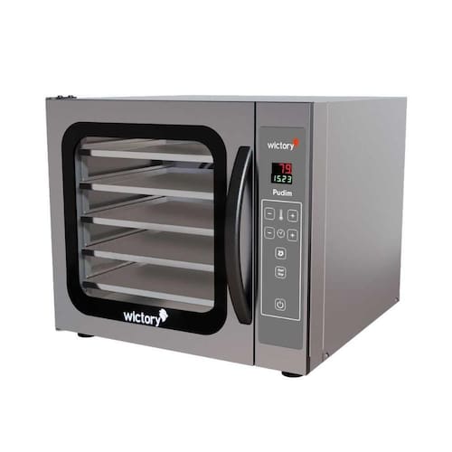 - Construção em aço inoxidável 304 e 5 assadeiras lisas em alumínio, garantindo resistência e durabilidade; - Alta produtividade, permitindo o preparo de grandes quantidades em menos tempo; - Timer digital com tempo ajustável até 99 minutos; - Controle de temperatura ajustável até 250 C com rápida retomada; - Sistema de vapor automático com 4 níveis de intensidade ou modo sem vapor; - Cocção por convecção de ar forçado, garantindo assados mais rápidos e uniformes; - Suportes internos desmontáveis para facilitar a higienização; - Instalação simplificada; - Garantia de 1 ano; - Capacidade produtiva por fornada: 80 pudins (de 120g em 45min) 20 pudins (de 500g em 55 minutos) 10 pudins (de 1kg em 65 minutos).