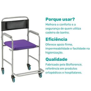 O Assento Estofado para Cadeira de Banho Bioflorence é uma almofada higiênica desenvolvida para proporcionar mais conforto, segurança e estabilidade durante o banho.