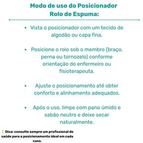 O Posicionador Rolo de Espuma Bioflorence é um acessório ortopédico e hospitalar desenvolvido para auxiliar no posicionamento do paciente e prevenir lesões de pele por pressão (escaras).