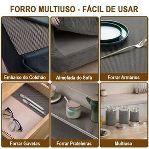 Forro flex antiderrapante Assenta unifortmente sobre prateleiras e fundo de gavetas Corte industrial com acabamento perfeito Vantagens - antiderrapante e antimofo; - flexível e resistente; - anti impacto; - fácil de usar; - fácil de recortar com tesoura ou estilete; - corte industrial ótimo acabamento; - excelente qualidade; - assenta uniformemente nas prateleiras e gavetas; - discreto e moderno; - combina com qualquer ambiente. Contém: 1 peça s Dimensões de cada peça - largura: 30cm - comprimento: 4,00 metro s Cor: cinza Material: antiderrapante 100% pvc Sugestão de uso: prateleiras e gavetas em cozinhas, quartos, closets e etc. Somos fabricantes, por isso garantimos o melhor preço e qualidade para esse produto. Um produto idealiza comercio de utilidades. Marca: Não Informado