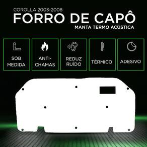 FORRO CAPÔ MANTA TERMO ACÚSTICA ANTIRRUÍDO COROLLA 2003 A 2008 FELTRO ISOLANTE 5MM PRETO ANTICHAMAS GRUD GTC 5587