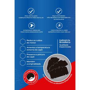 - Corte preciso a Laser, específico para cada veículo - Não necessita de ferramentas para instalação, autocolante - Reduz os ruídos do motor - Ameniza a temperatura externa do capô - Preserva a pintura do capô - Mantém a originalidade