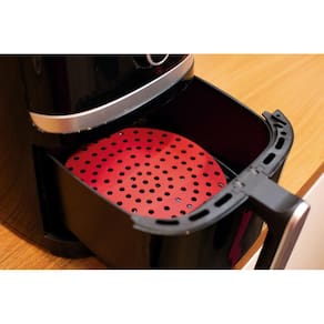Forro de silicone redondo para airfryer, auxilia no preparo de refeições, evita resíduos e protege os alimentos.Vendido e entregue por Loja Mor