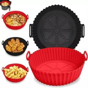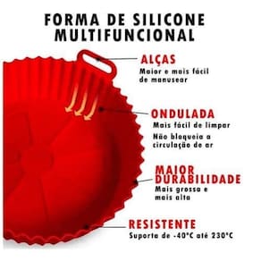 Forro Proteção Pra Fritadeira Forma Silicone Air Fryer Micro-ondas Com Alça Redonda Forma de Silicone para Air Fryer com alça Essa forma é ótima para trazer ainda mais praticidade no preparo dos alimentos, seja na air fryer, microondas ou forno. Produto super resistente e maleável, feito em silicone livre de BPA. O forro é reutilizável e fácil de limpar, não tóxico e antiaderente. Indispensável para os preparos diários na cozinha. Suporta temperaturas de -40ºC até 230ºC, capacidade de 1,5 litros e é compatível com freezer e microondas. ESPECIFICAÇÕES: - Material: Silicone - Dimensões: 20cm diâmetro x 6,5cm altura- Peso: 100g aprox. - Não ter contato direto com fogo, nem objetos cortantes - Temperatura indicada -40ºC até 230ºC - Indicada para lava-louças
