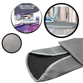 Sobre capa para tábua de passar roupa - superfície 100% algodão aluminizado térmico refratário - base 100% espuma de alta densidade - facilita a ação de passar roupas - superfície aluminizada por processo de espatulágem, com material térmico refratário - mesmo material de luva térmica - anti-chama - retém e reflete o calor - forro acolchoado: aumenta o contato com o ferro de passar - roupas passadas por cima e por baixo de uma só vez