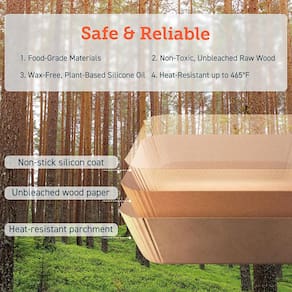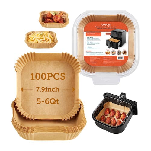 Forros descartáveis quadrados para fritadeira a ar COSORI, feitos de papel revestido com silicone antiaderente, resistentes até 240°C, à prova d'água e óleo.Tipo