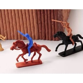 Chame todos seus amigos para entrar nesta batalha que o Velho Oeste nunca viu! Forte Apache Batalha Júnior - Pequeno possui 34 peças incluindo o portal que abre e fecha com trava, duas torres de vigia, duas escadas, quartel general,oito soldados, oito indios,acessórios removíveis, bases para sustentar as figuras e quatro cavalos. As crianças vão adorar brincar com o Forte Apache! Características do produto Contém: 34 peças Idade recomenda: a partir de 3 anos Garantia: Defeito de fabricação Material: plástico Dimensões da embalagem AxLxP : 38,0 x 24,00 x 12,00 cm Ref.: 0065 Fotos meramente ilustrativas.