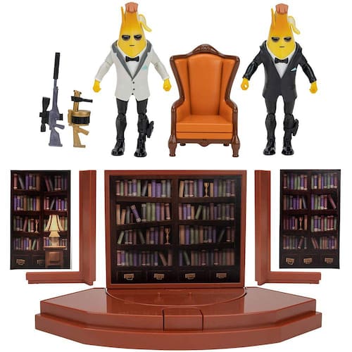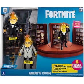 PRODUTO INTERNACIONAL. Este incrível playset lendário de Fortnite conta com a presença de dois Agentes Peely, um Ghost e um Shadow. Com a variedade de salas e acessórios emocionantes, você vai adorar este playset! Ative a passagem secreta pressionando o botão no chão e descubra a parede traseira escondida, além de interruptores de estilo para uma experiência ainda mais emocionante