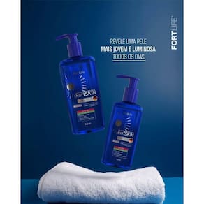Fortskin Sabonete Anti-Idade 140ml FORTLIFE Descrição O FortSkin Sabonete Anti-Idade da FortLife é um produto de limpeza facial desenvolvido para combater os sinais de envelhecimento e promover uma pele mais jovem e radiante. Composição Ácido Salicílico: Um beta-hidroxiácido BHA que penetra profundamente nos poros, removendo o excesso de oleosidade e células mortas. Estimula a renovação celular, suavizando linhas finas e rugas. Ácido Tranexâmico: Propriedades clareadoras que ajuda a reduzir manchas escuras e uniformizar o tom da pele, promovendo um aspecto mais radiante e jovem. Benefícios: Redução de rugas e linhas finas Clareamento de manchas Renovação celularLimpeza profunda Textura suave Modo de uso Aplique no rosto úmido, massageando suavemente em movimentos circulares. Enxágue abundantemente com água. Precauções Mantenha fora do alcance de crianças. Uso externo. Evite contato com os olhos. Em caso de irritação, suspenda o uso e procure orientação médico Cuidados com a conservação Conservar bem fechado, em temperatura ambiente, protegido da luz, umidade e calor intenso. Importante Decoração não inclusa. Imagens ilustrativas. Cores podem variar por luminosidade, monitor ou percepção. Dados fornecidos pelo fabricante/fornecedor Marca: Não Informado
