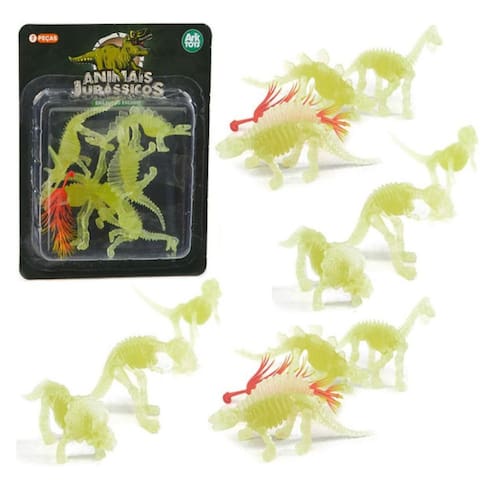 Fóssil de Dinossauro Fluorescente Brinquedo Infantil 7 Pçs Característica da estrutura do esqueleto do dinossauro pré histórico. Esta coleção de dinossauros de brinquedo proporciona horas de diversão educativa.